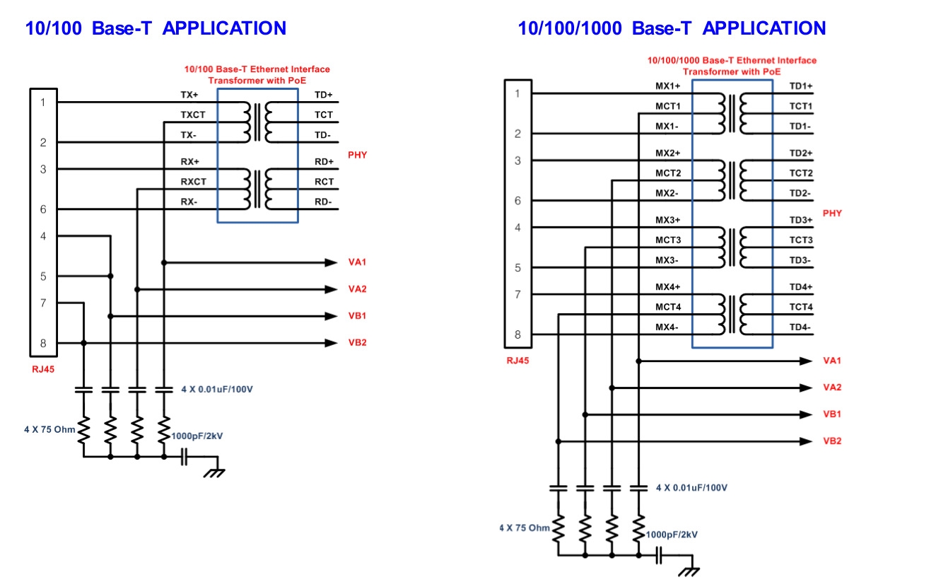 | RX Input (1). This input pin is used in conjunction with VA2 and connects tothe centre tap of the transformer connected to pins 1 & 2 of the RJ45 connector (RX) - it is not polarity sensitive. |