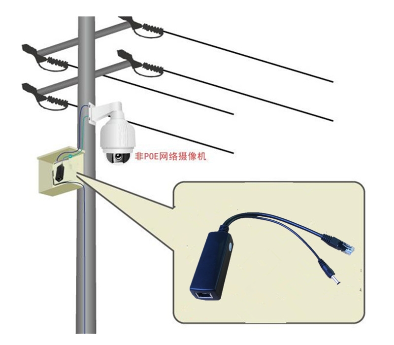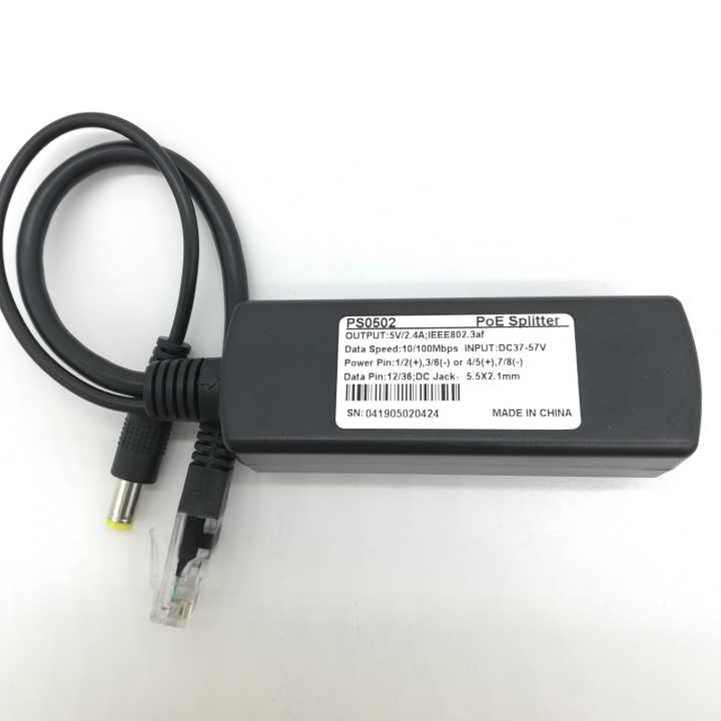 产品描述:10/100M PoE分离器,提供直流5V,IEEE 802.3af国际标准,功率12W