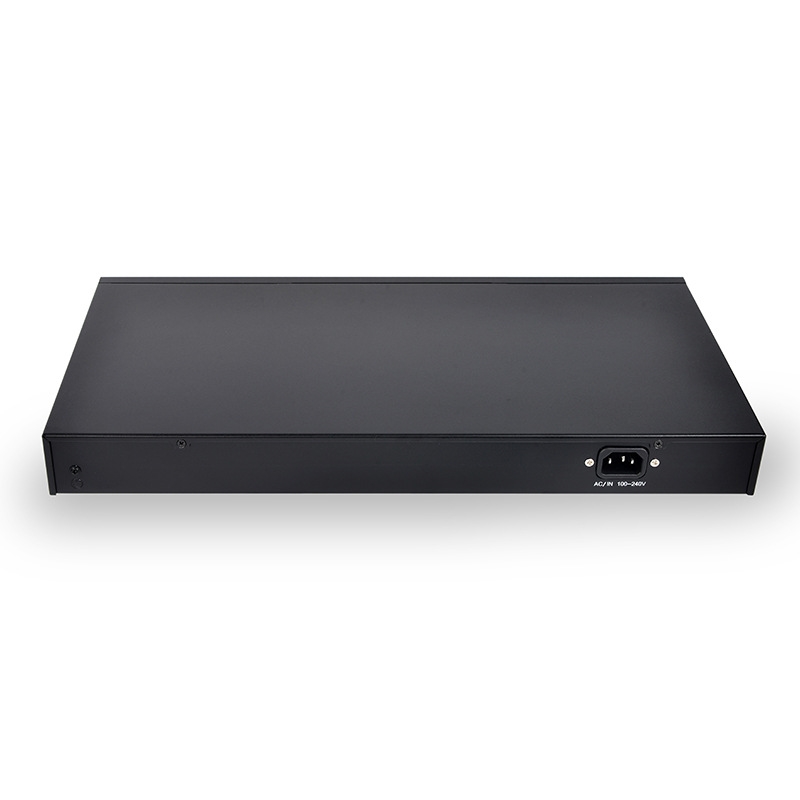 是24口全千兆24口具有POE功能的专为安防设计的非网管型POE交换机,具有自动检测与识别符合.3af/at标准的PD设备并为其供电的功能,因而不需要去担心会损坏私有标准的POE或非POE设备。