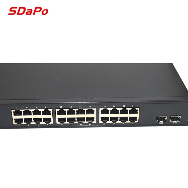 24个10/100/1000Mbps POE 功能的RJ45端口(端口1-端口24)2个千兆SFP扩展插槽(端口25-端口26)